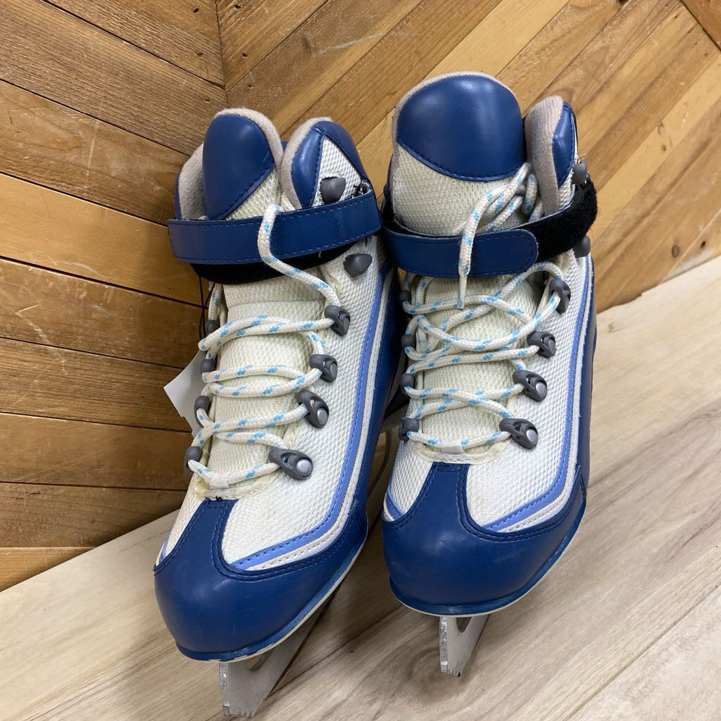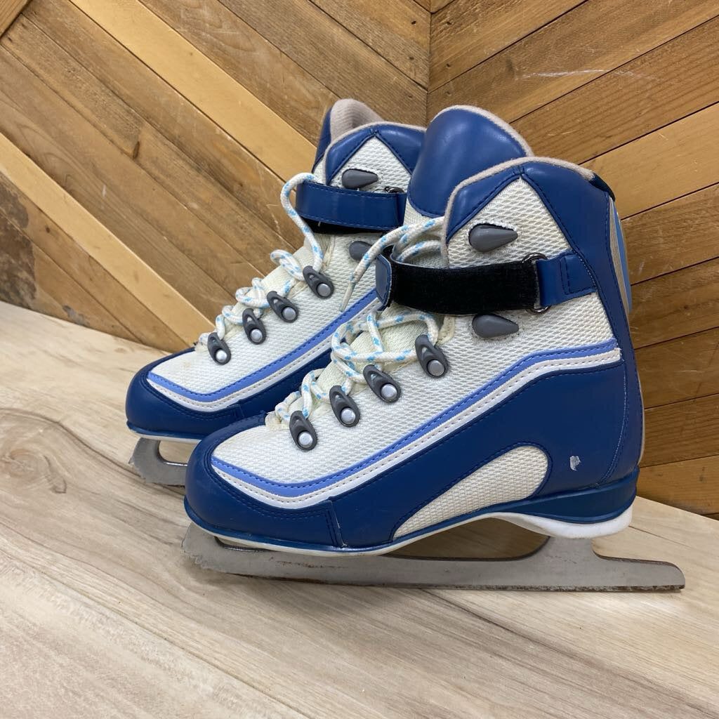Blue and White Ice Skates: blue, white-unisex-5Y