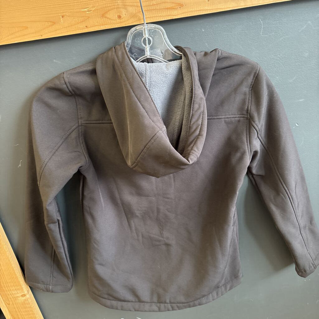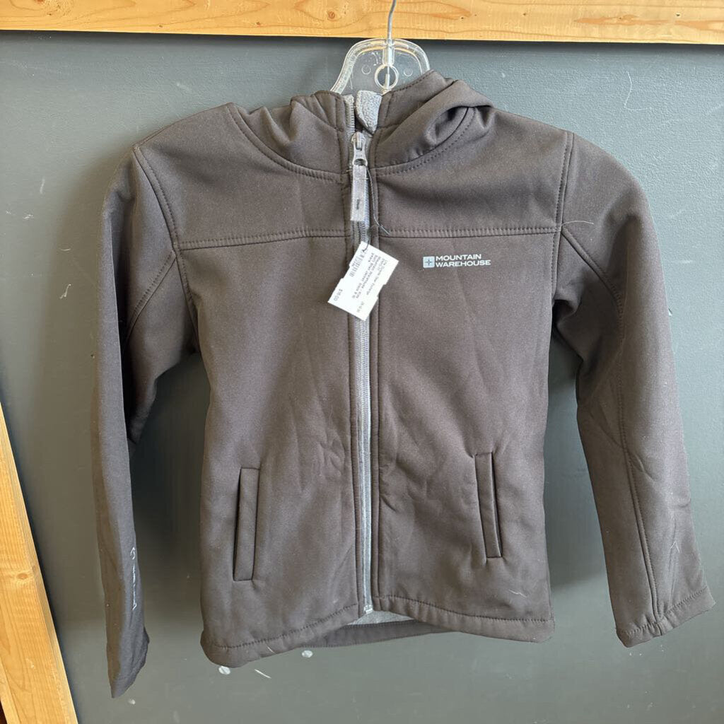 A versatile black soft shell jacket from Mountain Warehouse, designed for kids aged 9-10 years. Water resistant and warm, perfect for outdoor activities.