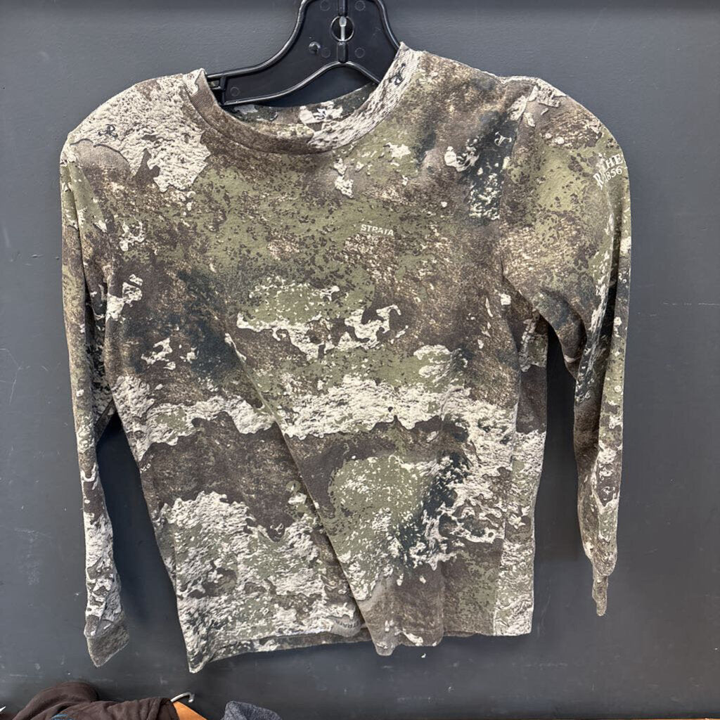 A durable and stylish long sleeve shirt designed for outdoor activities, featuring a camouflage pattern that's perfect for hunting or casual wear.