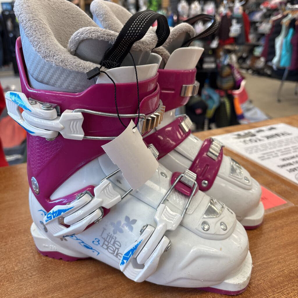 TheseLittle Belle ski boots are perfect for young girls learning to ski, featuring a comfortable fit and vibrant design.