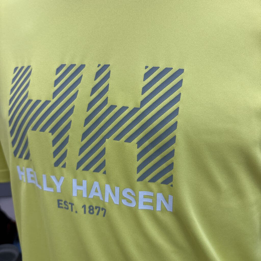 Lightweight Helly Hansen activewear shirt in yellow, perfect for outdoor activities or casual wear.