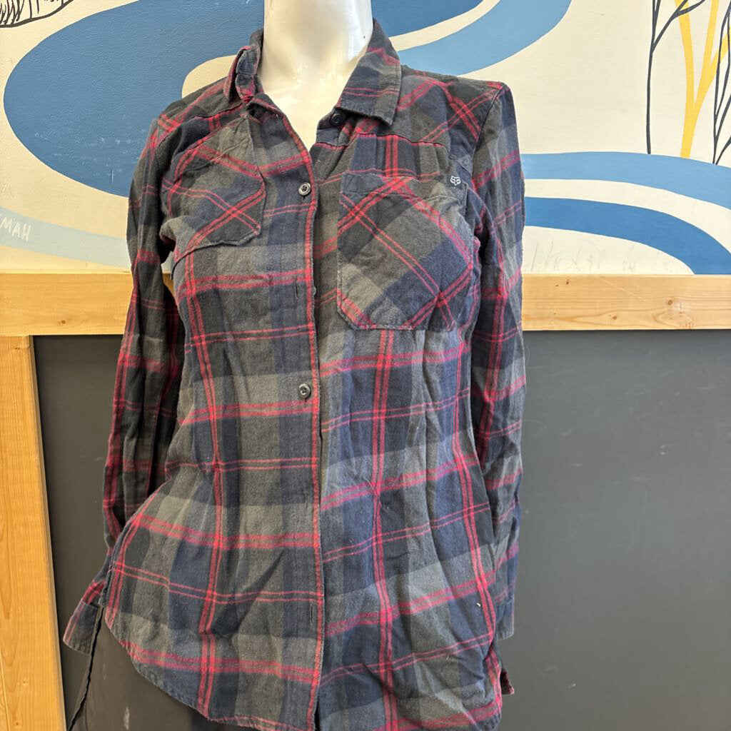Fox Racing - Woman's Plaid Flannel Shirt- MSRP $95: gray, red-women-XS
