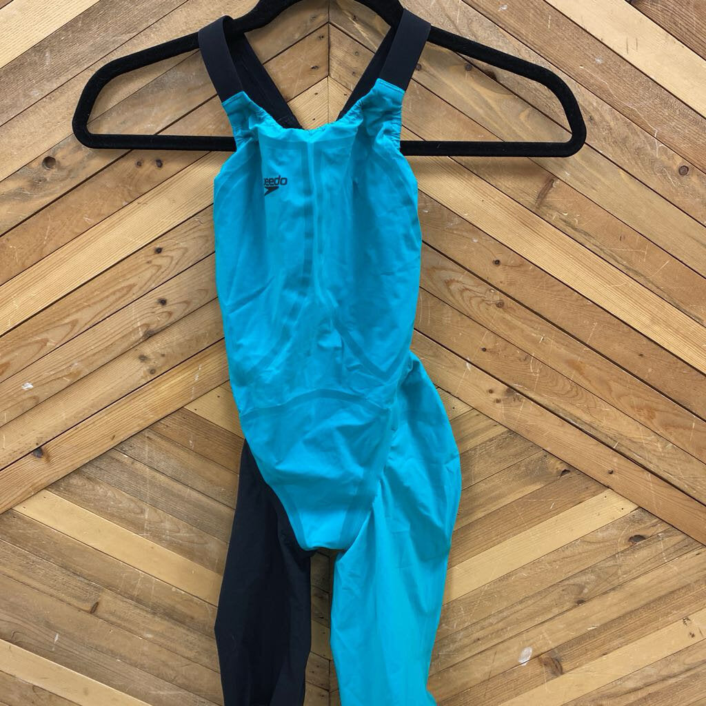 Speedo - Racing Racerback Kneeskin Swimsuit - MSRP comp $285: Teal Blue/Black-women-24